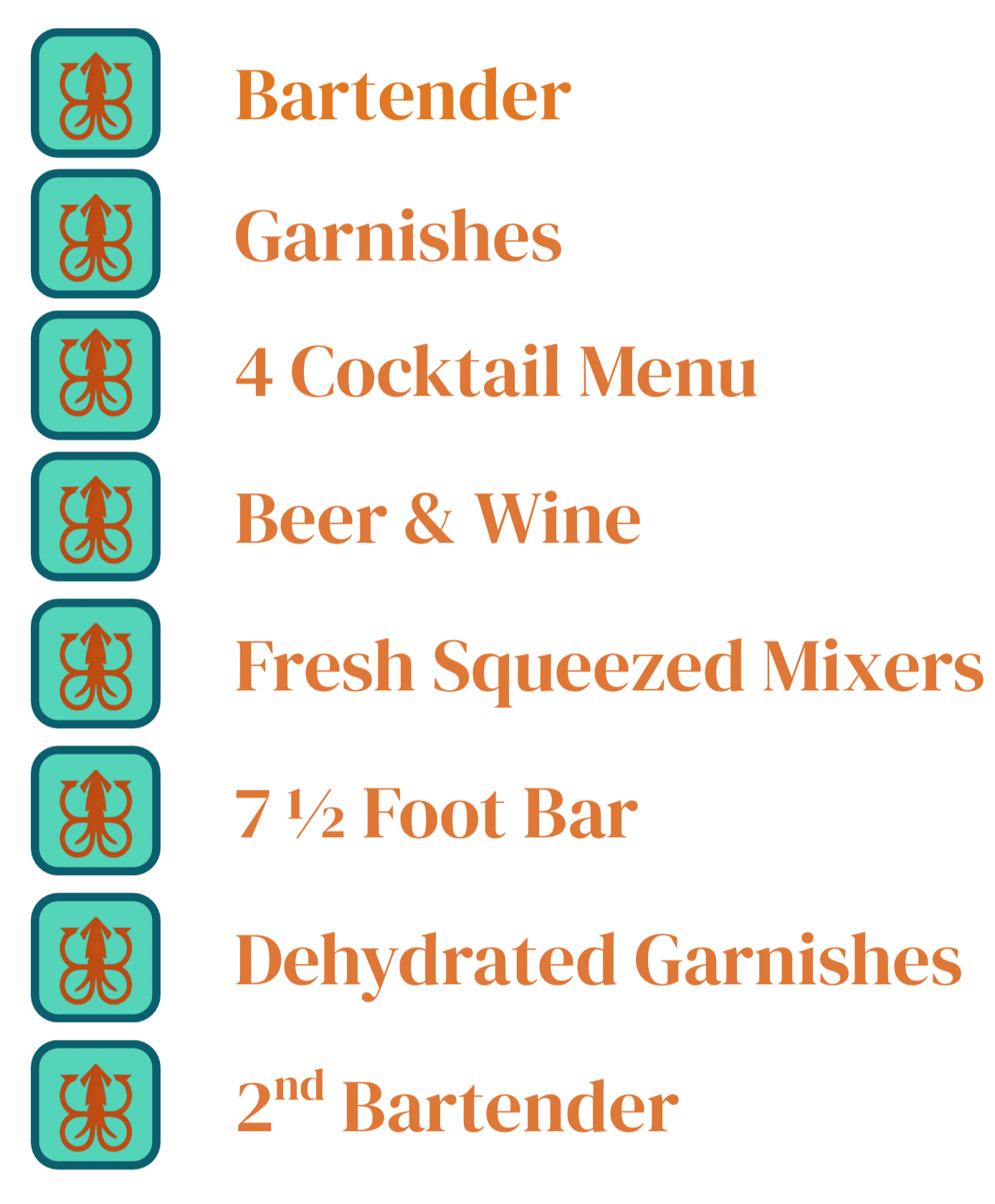 All of our signature packages include: Cups, straws, napkins, ice, house-made syrups, and hand squeezed mixers.